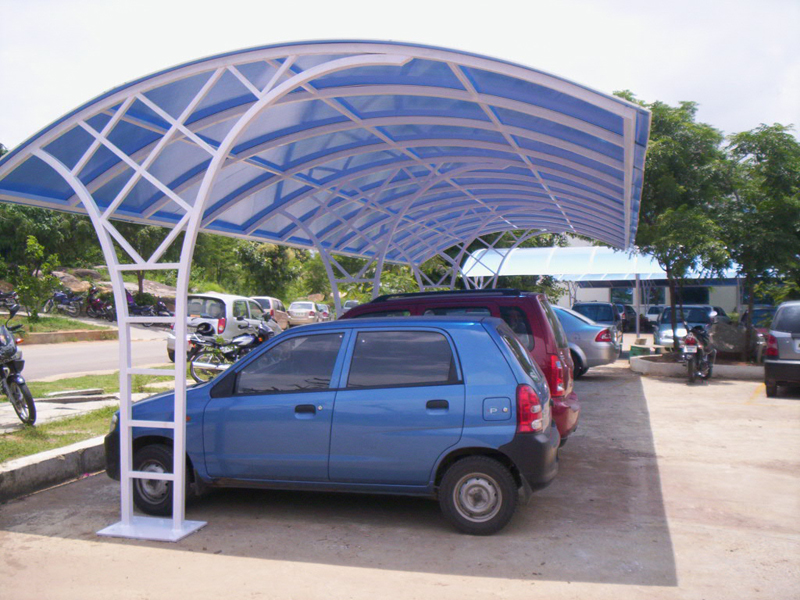 We are the best manufacturer and supplier of Car Parking Tensile Structures, Car Parking Sheds, Car Parking Structures, Covered Car Parking Structures, Parking Structures, Parking Garage Sheds, Parking Garage Structures, Vehicle Parking Sheds, Vehicle Parking Structures in India. We have large number of happy customers who have used our excellence and expertise. The car parking tensile structure covers efficient area and provides protection from harsh sunlight that can damage the vehicle. These shades are designed to provide required protection to the vehicle while parking. The shades are sturdily constructed using tensile polycarbonate sheets and fabric and can withstand adverse weather conditions. The structure can easily be installed and dismantled and is aesthetically pleasant for eyes as well as environment.